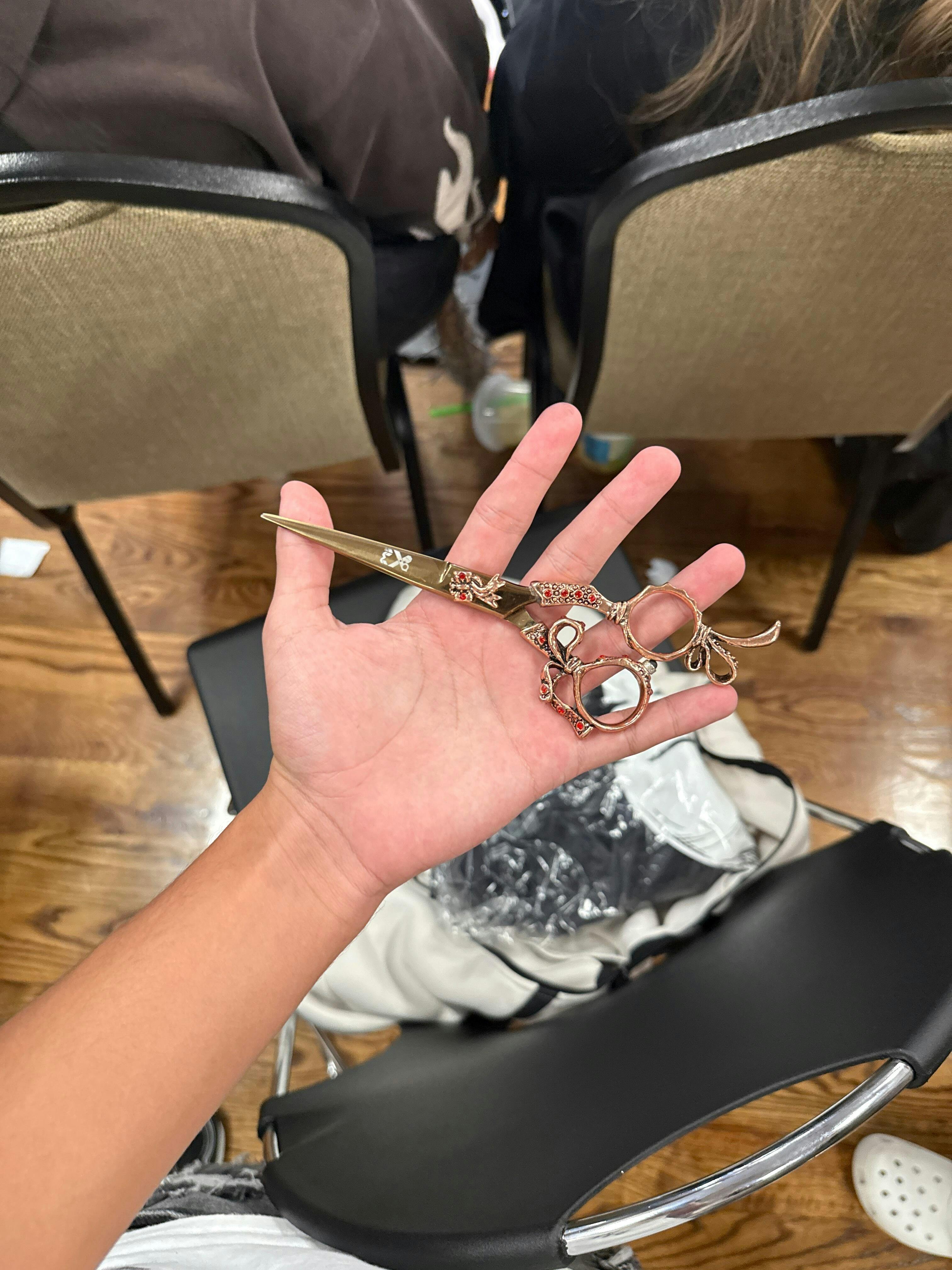 Radiating timeless luxury, the Luxury Rose Gold Scissors with Red Gemstones are a symbol of class and refinement. The stunning rose gold finish offers a warm, radiant glow, complemented by the striking red gemstones embedded in the handles. These shears are not only a visual masterpiece but also a high-performance tool, crafted from premium stainless steel for unparalleled sharpness and durability. The ergonomic design and superior balance ensure effortless handling, while the precision blades deliver clean, smooth cuts for both cutting and texturizing, making them an essential tool for any top-tier stylist.