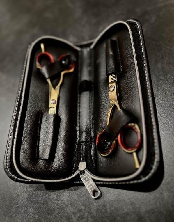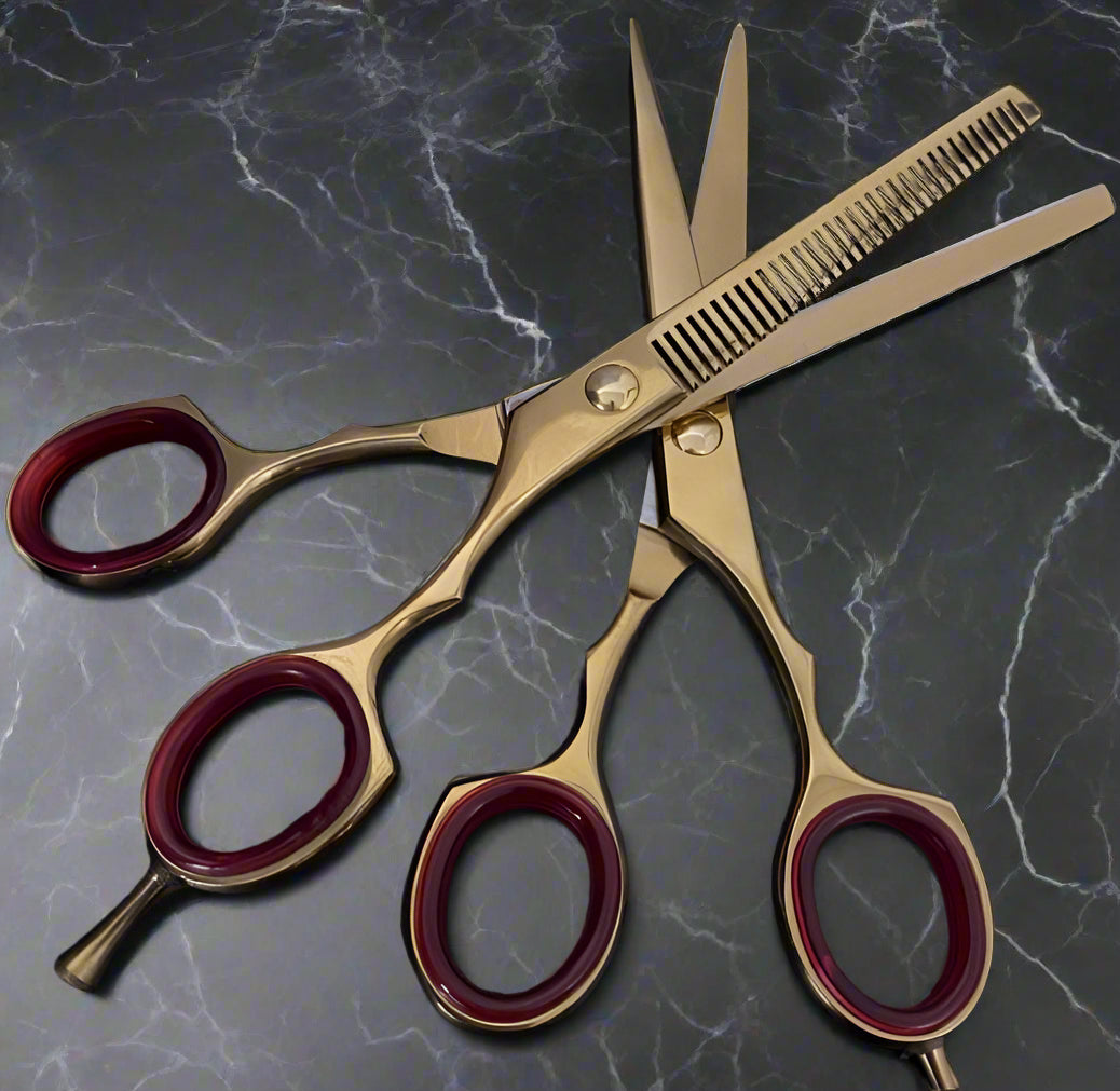 Premium Gold Hair Cutting & Thinning Scissors Set 6” LEATHER CASE